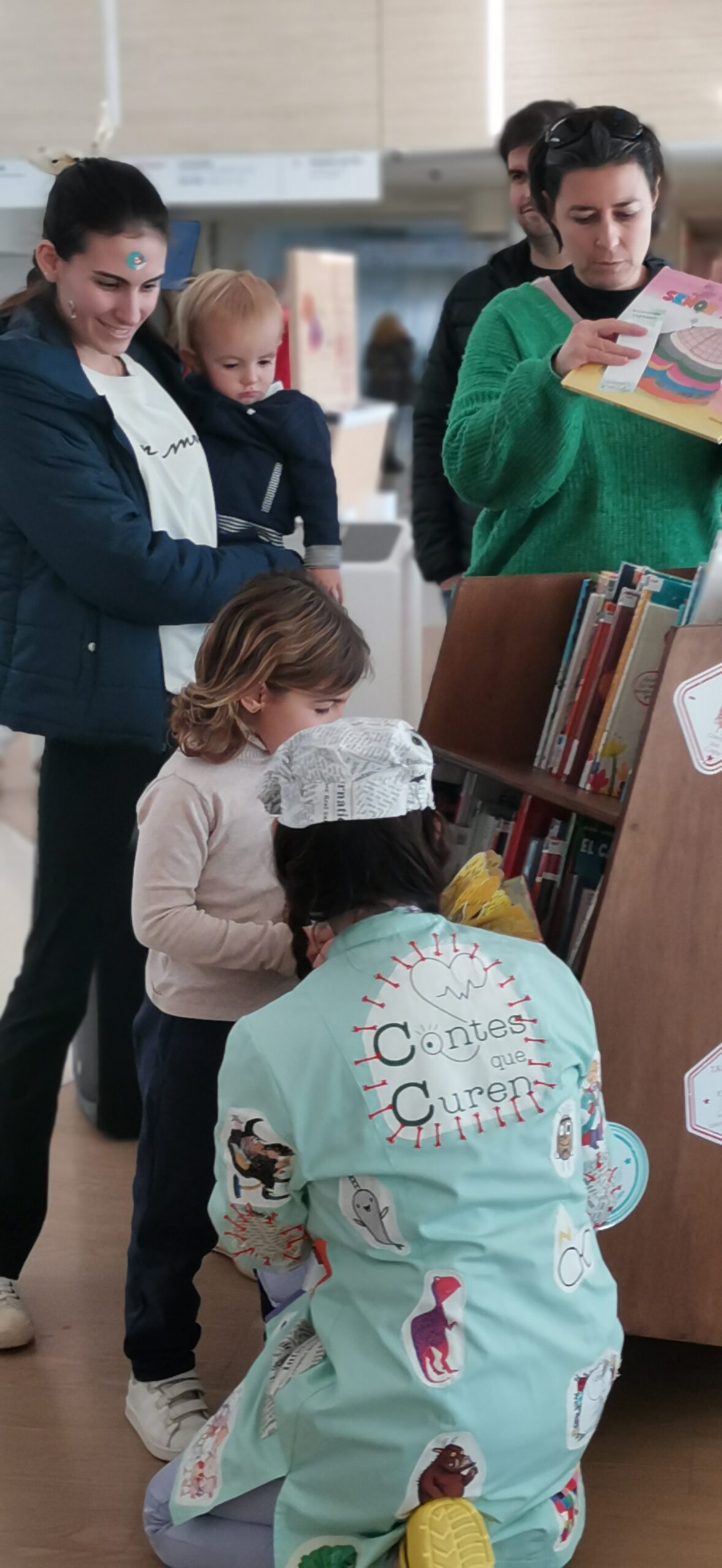 Contes que Curen és un programa terapèutic que porta sessions de contacontes a les habitacions i sales dels hospitals, oferint als pacients històries que acompanyen i llibres en préstec per fer més lleu l’estada.